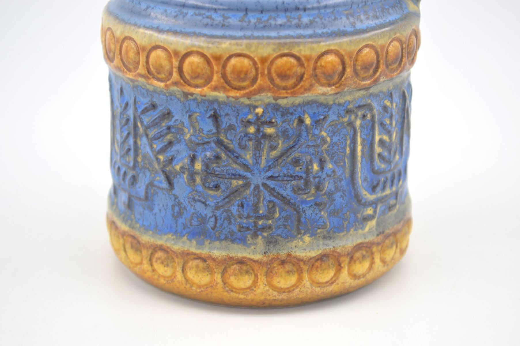Vintage WGP Bay Keramik Fat-Lava Keramik Henkelvase 65-17 Bodo Mans Design 1960s West German gelbe- und blaue Fat-Lava Glasur MCM Pop-Art Design