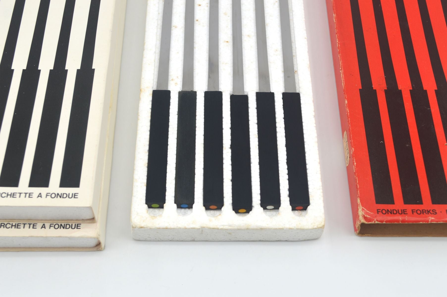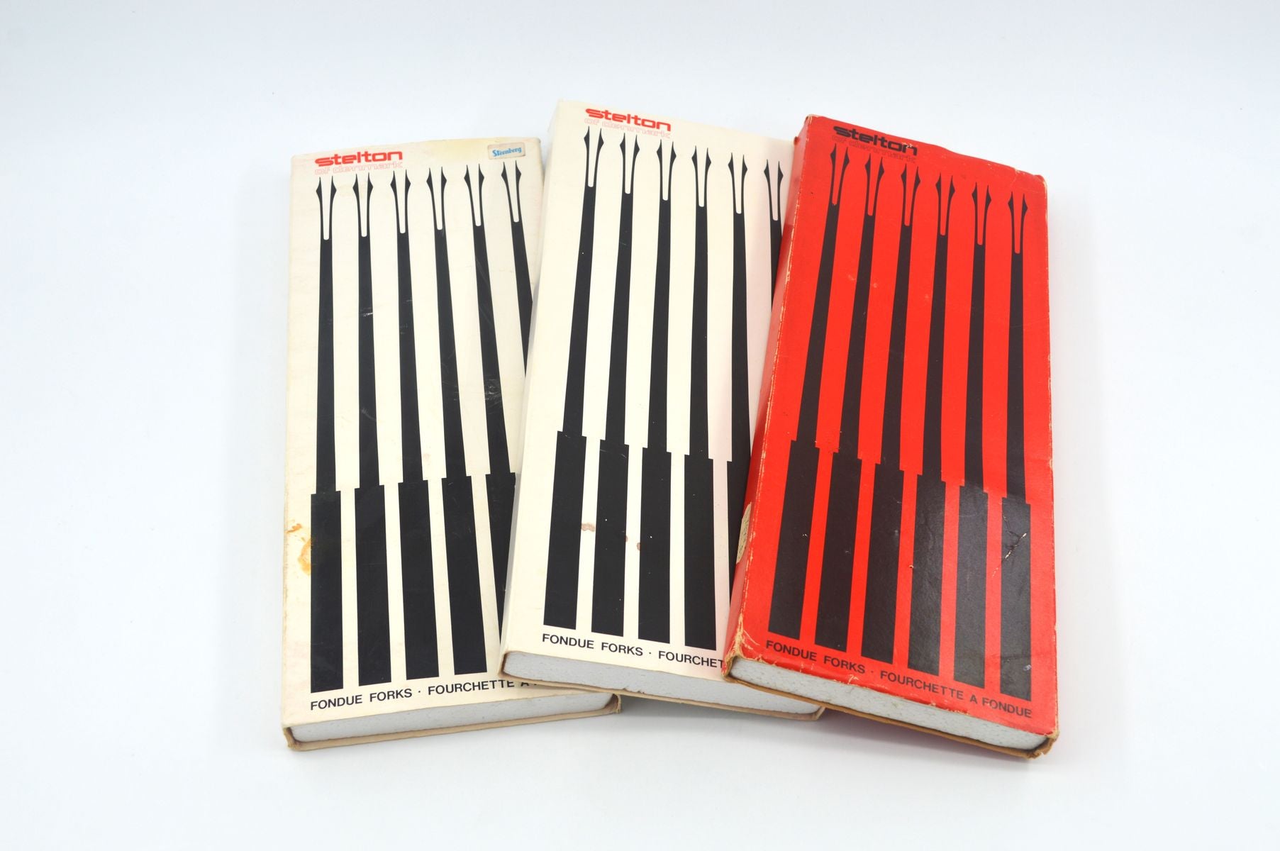 Mid-Century Stelton Fonduegabeln Peter Holmblad Design in Originalverpackung dänisches Vintage Design Besteck 1970s Danish Modern Design