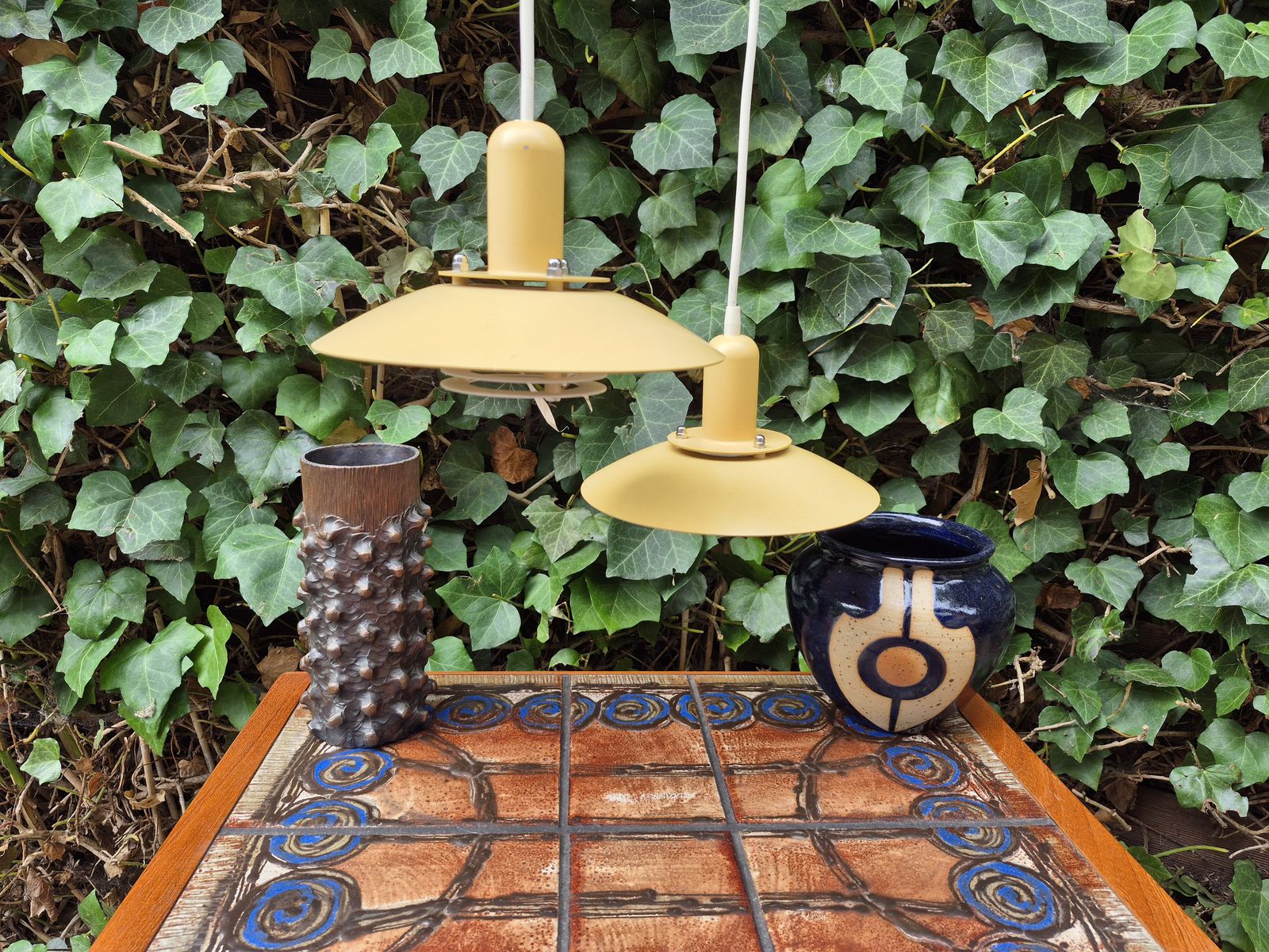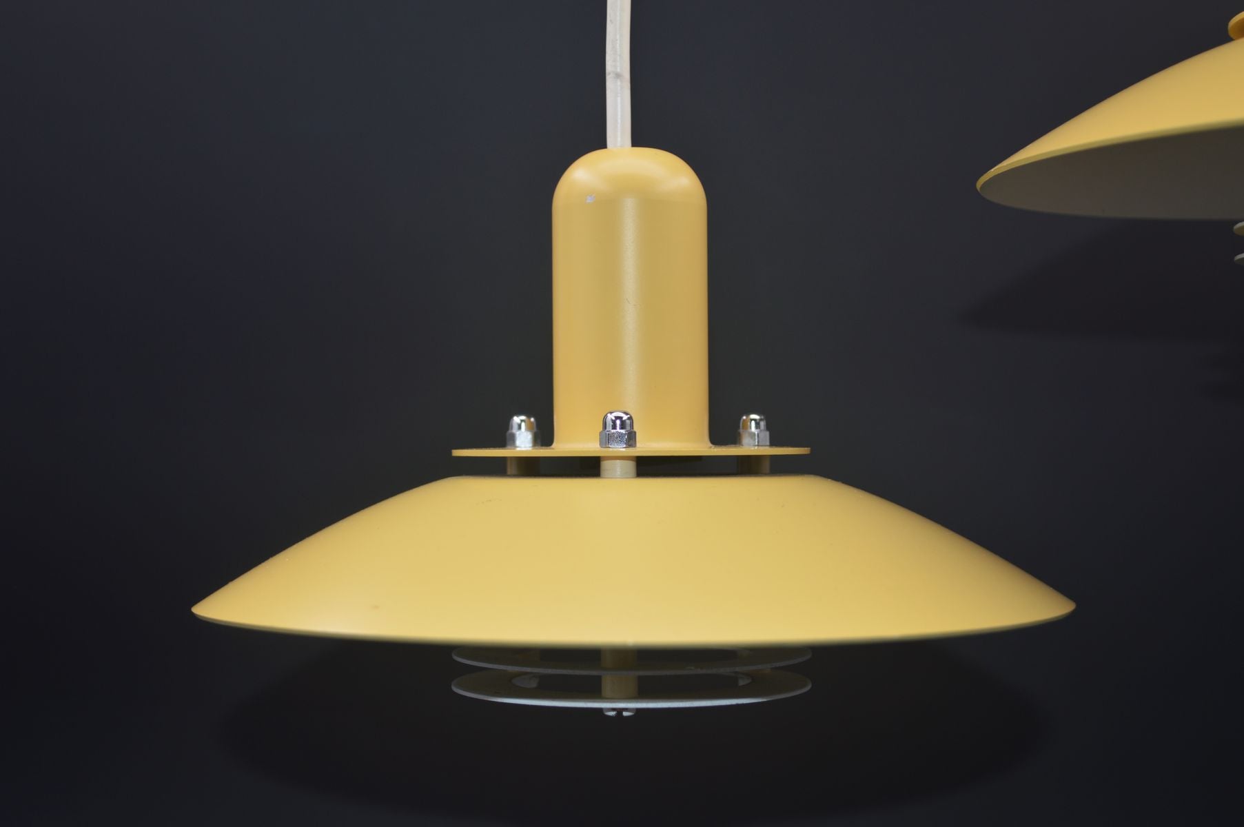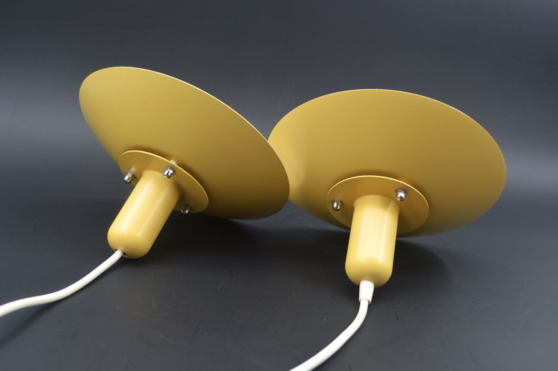 Jeka Metaltryk A/S Denmark gelbe Pendellampen Luna 8021-P Kurt Wiborg Design – dänische MCM Design 1980s Vintage Designlampen