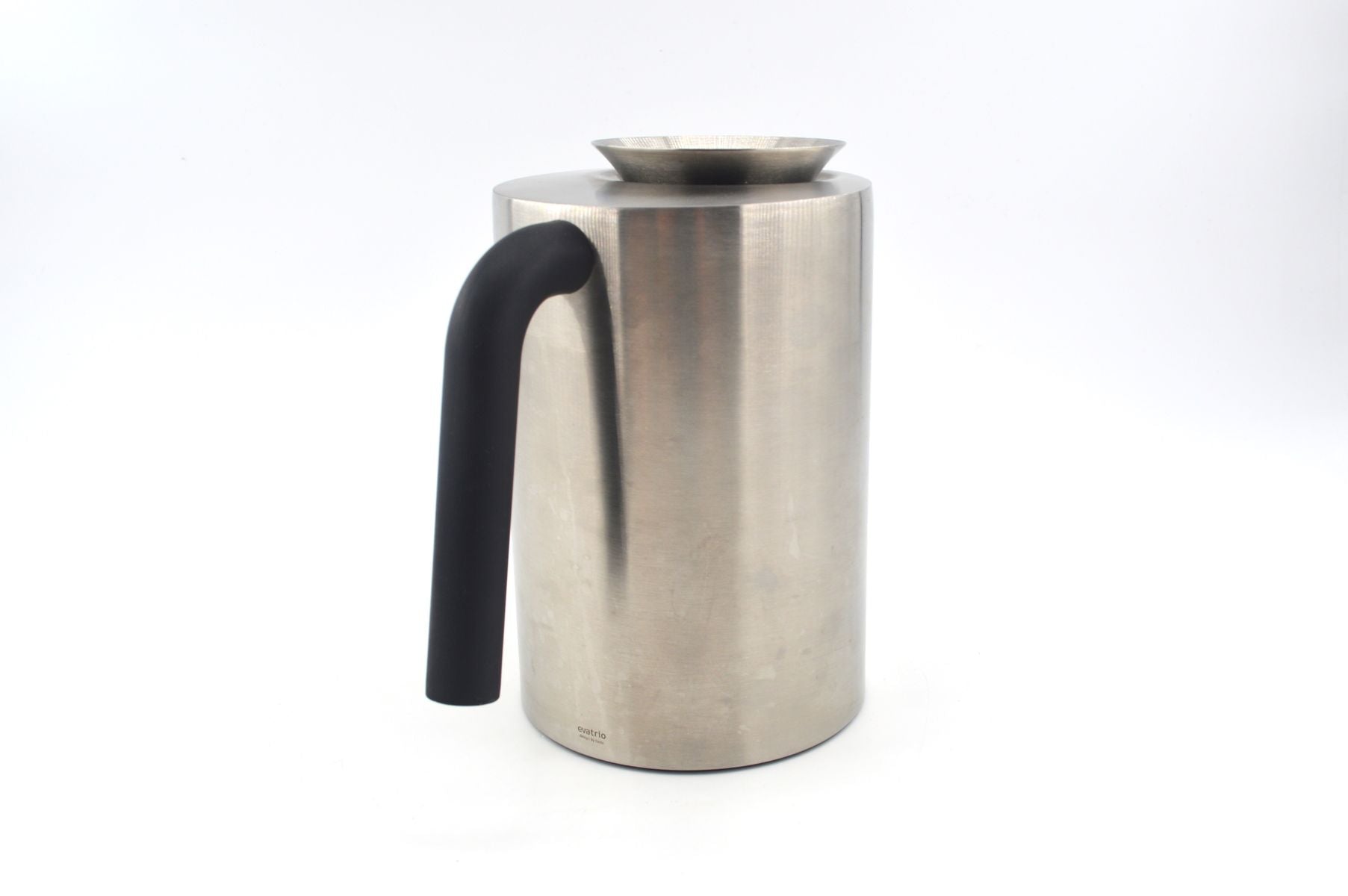 Hier habe ich diese Edelstahl Isolierkanne von dem Bekannten Unternehmen Eva Solo für Euch. Der Unternehmer und Eigentümer von Eva Solo, Erik Mangor, schloss sich 1977 mit dem dänischen Designer Ole Palsby zusammen um eine neue Serie von Töpfen und Pfannen zu entwickeln. Aus dieser Zusammenarbeit kamen verscheide Serien von Haushaltswaren heraus. Im Laufe der Zeit erweiterte sich das Sortiment und andere Designer waren für Eva Solo tätig. Hinter dem Kürzel Tools verbergen sich die Designer Claus Jensen und Henrik Holbæk, welche seit 1989 tätig sind. Diese Isolierkanne aus Edelstahl stammt aus einem Entwurf des Duos und besticht durch die klare Formgebung und die Verwendung geometrischer Grundformen. Der solide, gummierte Griff ermöglicht dabei eine gute Handhabung der Kanne. Das zeitlose Design verleiht dieser Kanne steht symbolhaft für hochwertiges, skandinavisches Design. Weiteres hochwertiges Design-Kochgeschirr findet ihr in meinen weiteren Annoncen.