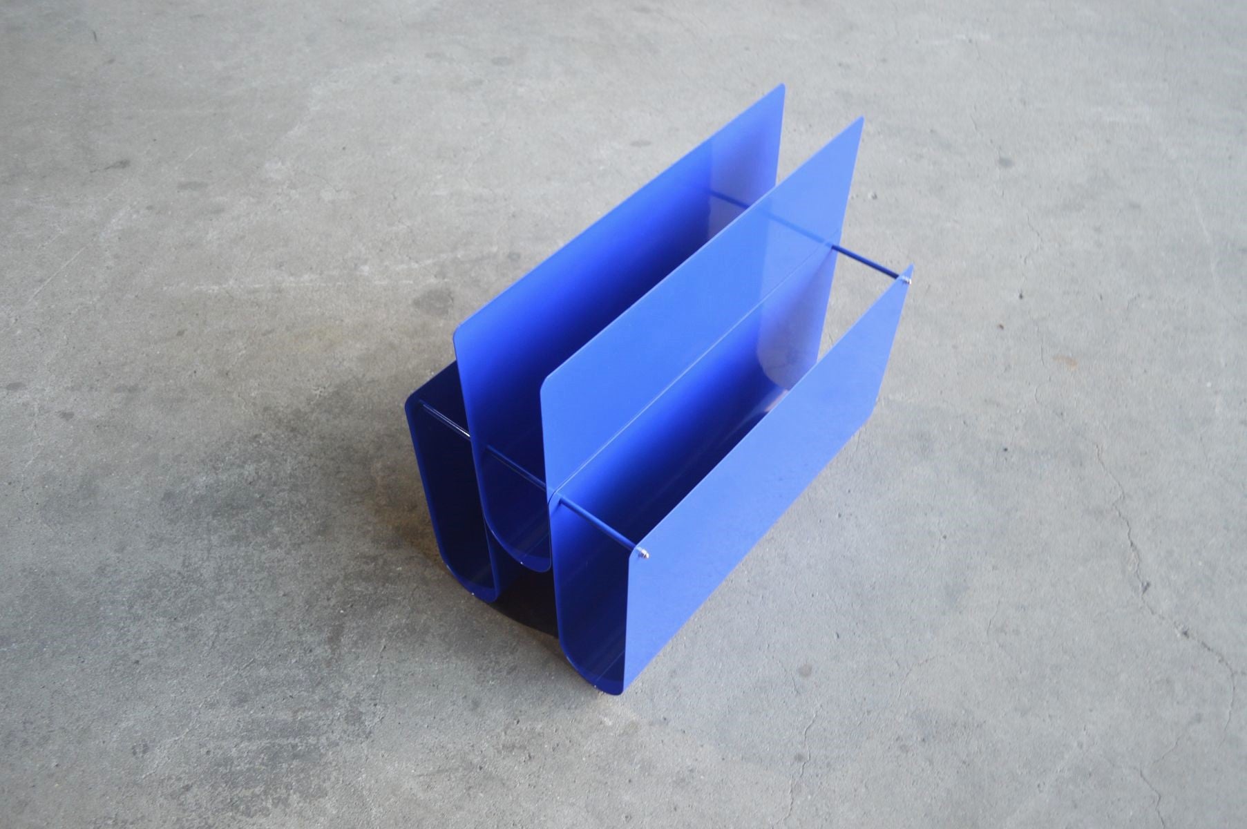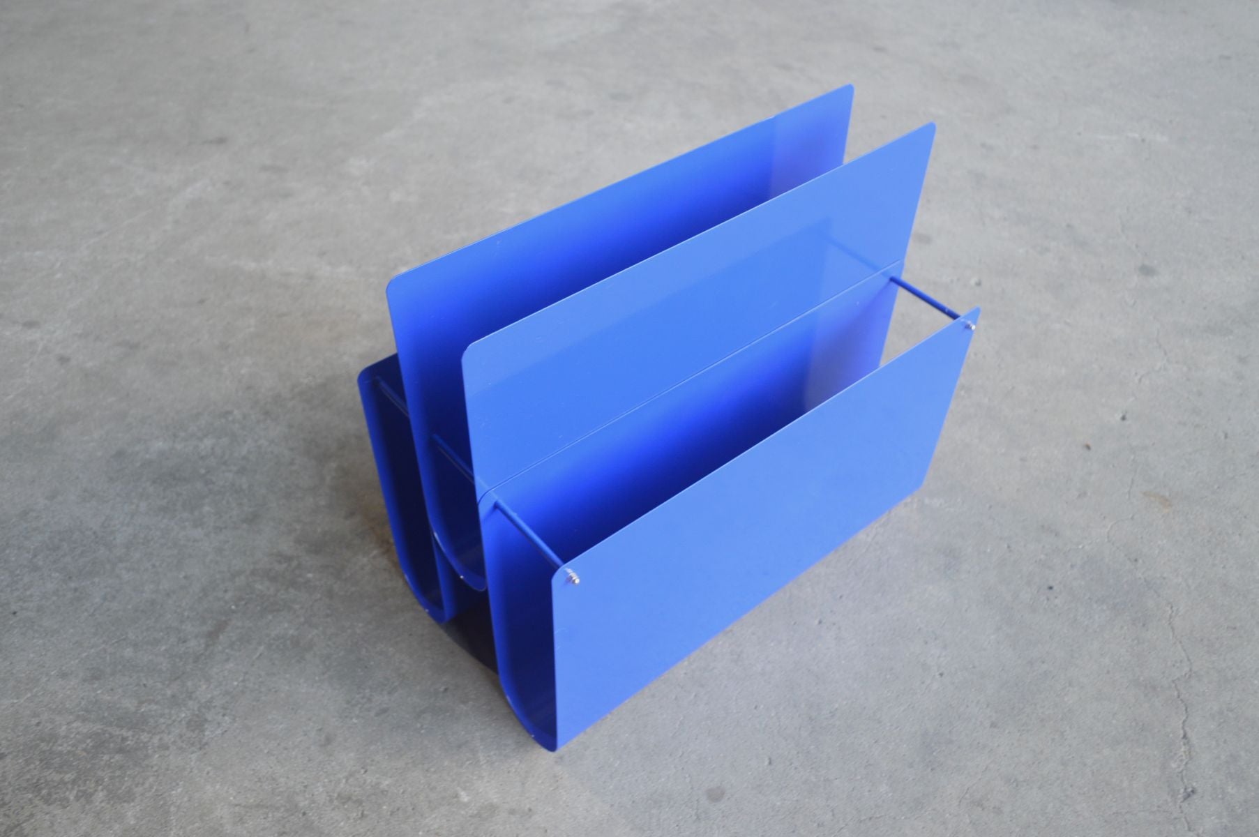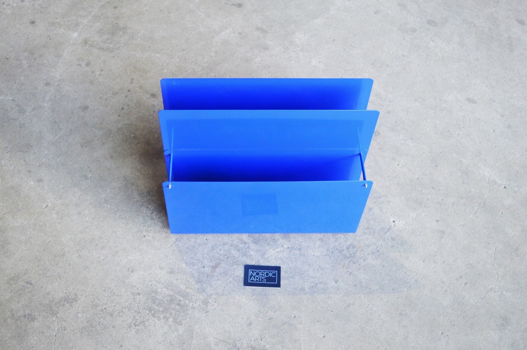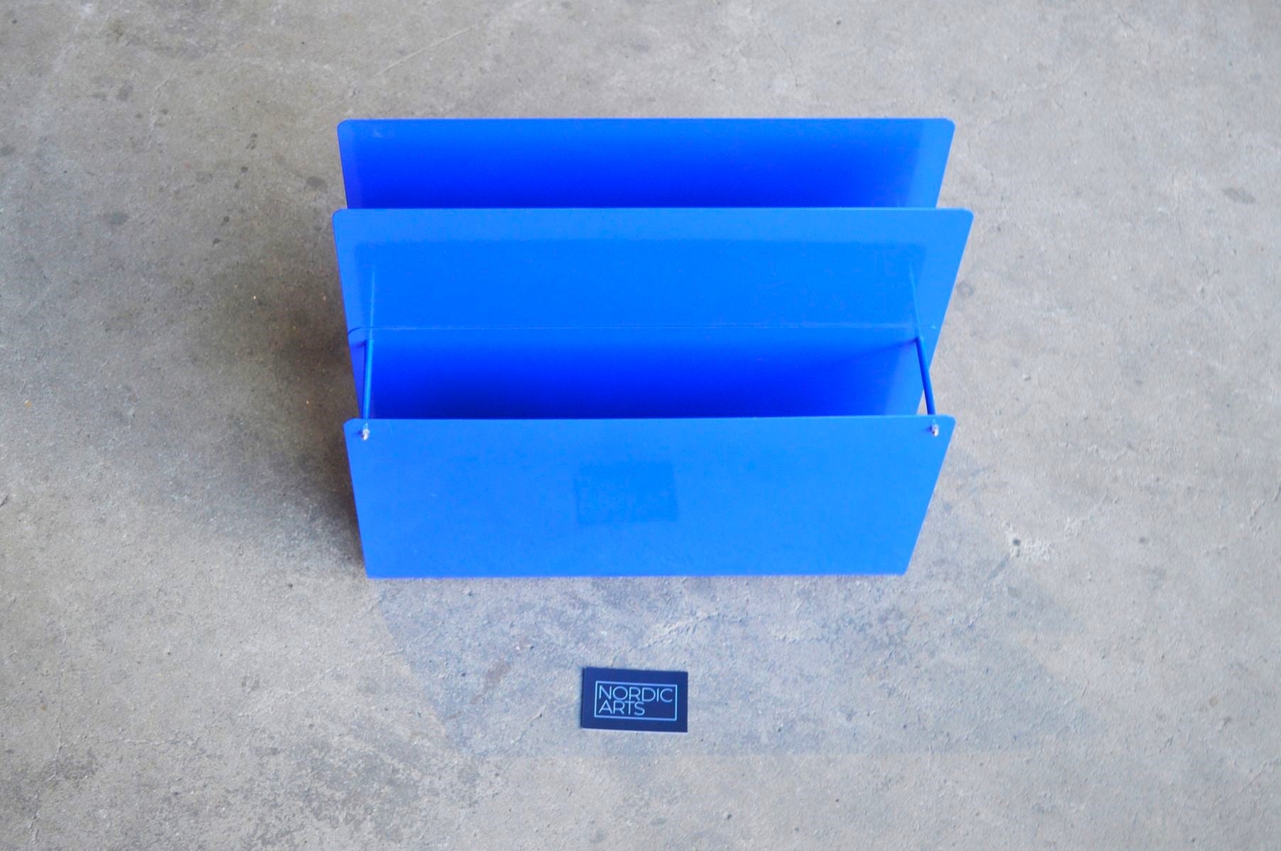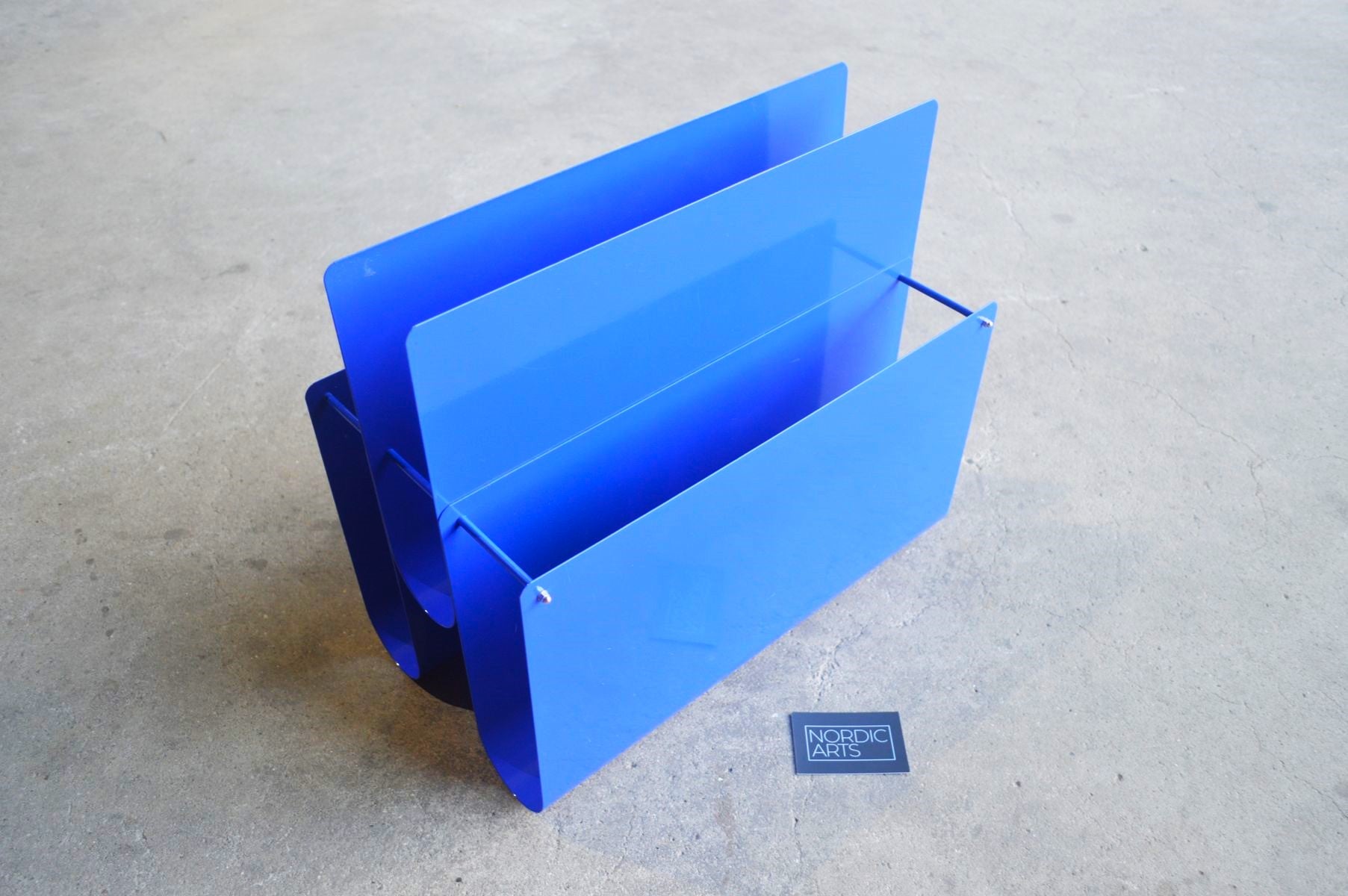 Hier habe ich diesen postmodernen Zeitschriftenständer aus Skandinavien für Euch. Der solide Zeitungsständer aus ultramarinblau lackiertem Metall überzeugt durch das minimalistische Design und die ausgefallene Gestaltung; das mittlere Fach ist höhenversetzt. Gefertigt wurde dieser vermutlich in Dänemark in den 1980er Jahren. Das zeitlose Design und die leuchtende Lackierung dieses Zeitungsständers macht ihn zu einem wunderbaren MCM Design Klassiker und einer stilvollen Ergänzung für euer Wohnzimmer. Viele weitere Designklassiker aus Skandinavien findet ihr in meinen weiteren Annoncen.