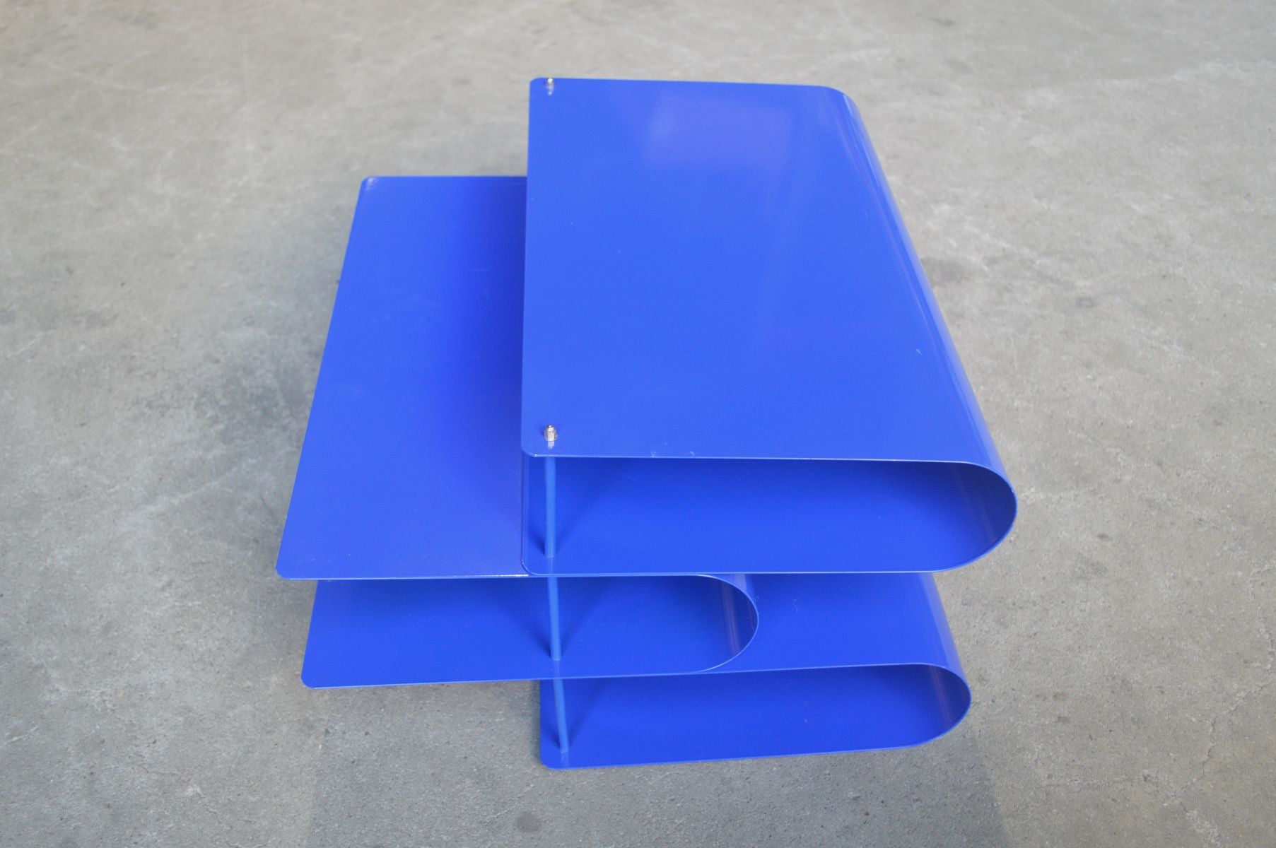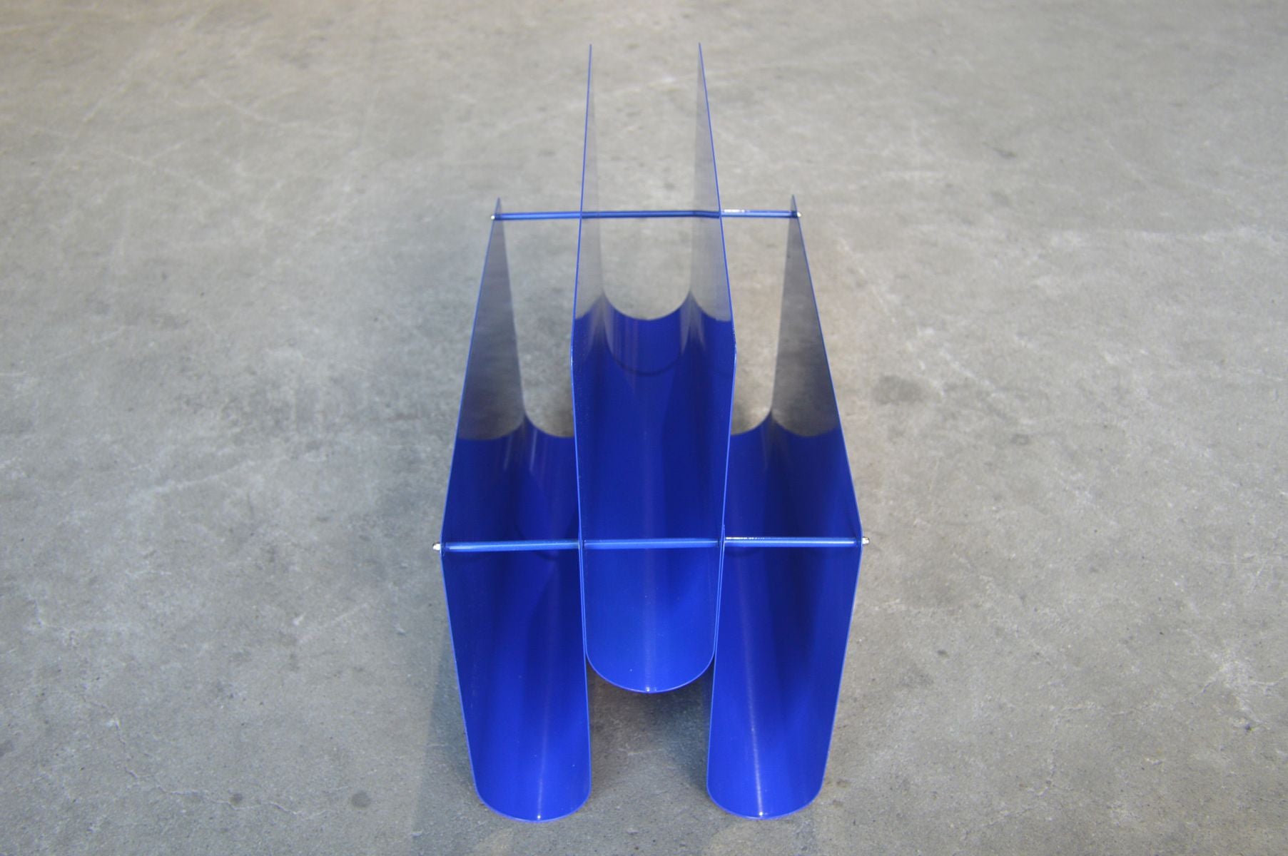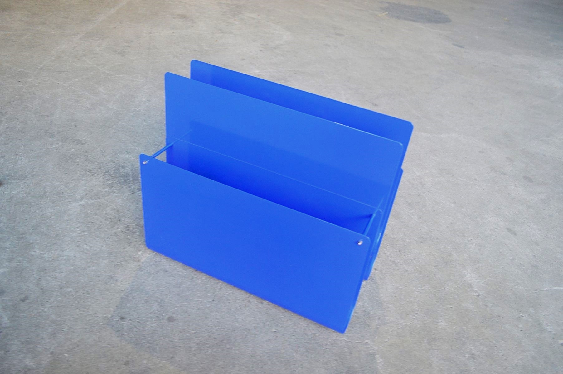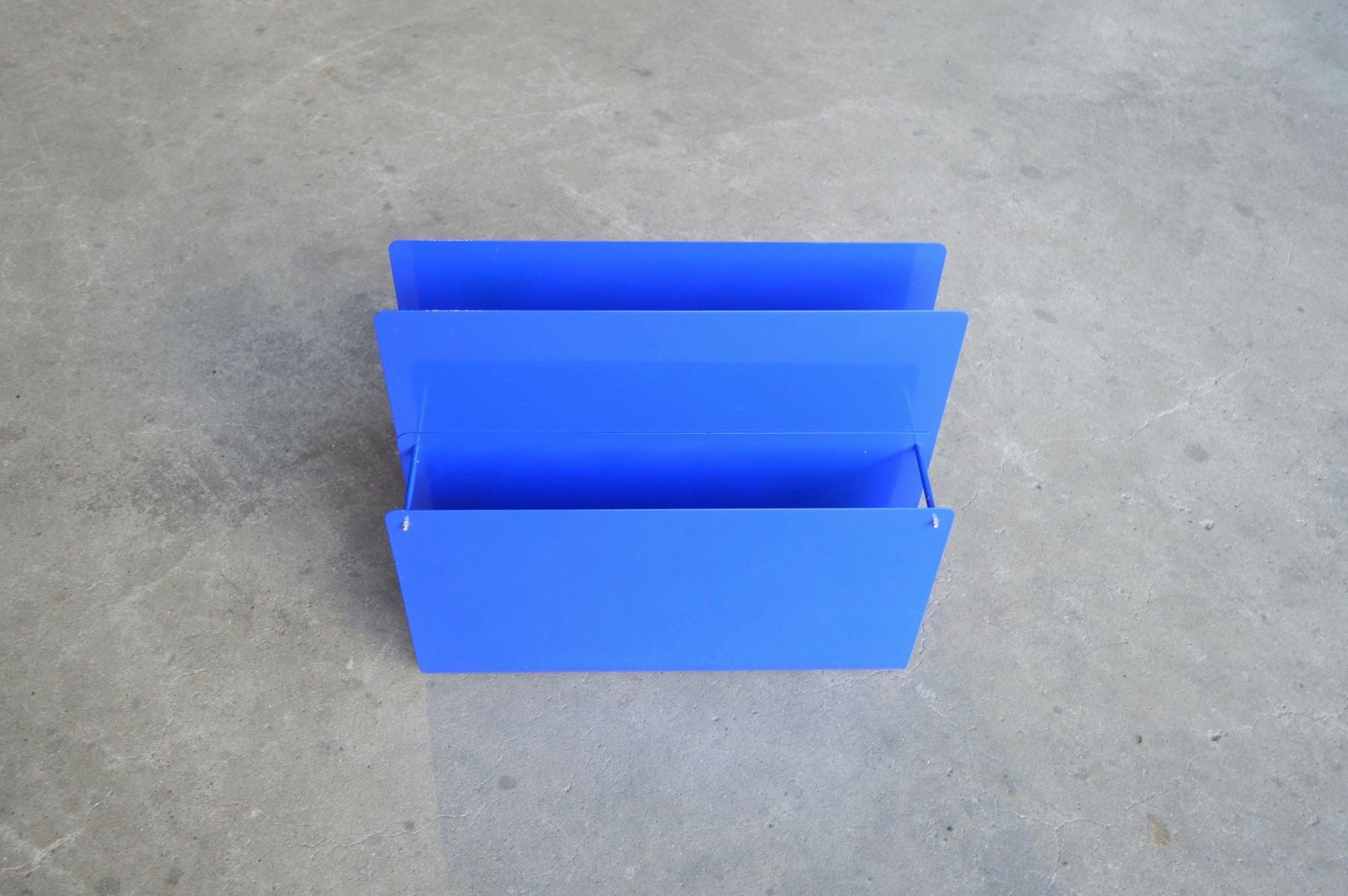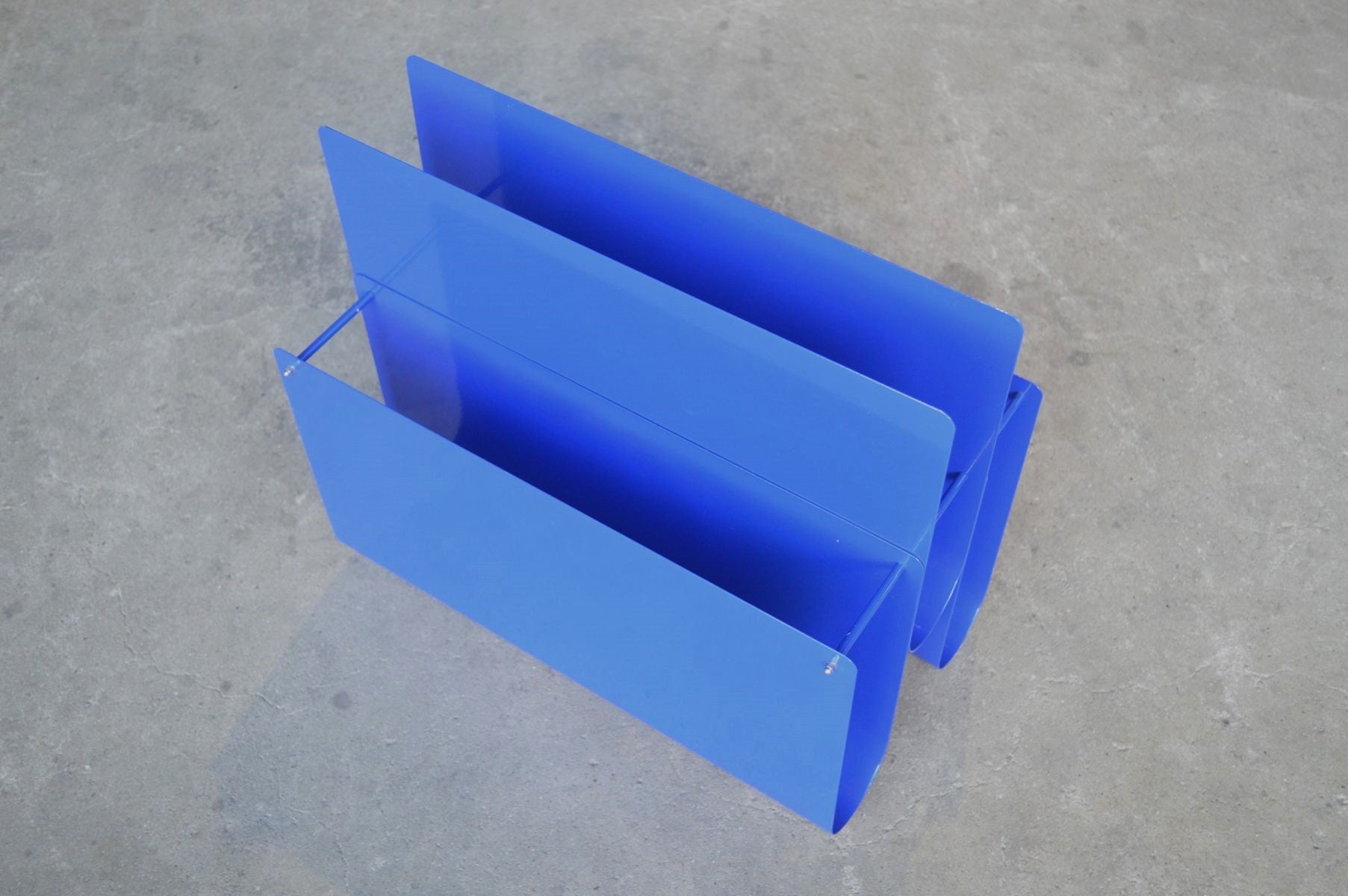 Hier habe ich diesen postmodernen Zeitschriftenständer aus Skandinavien für Euch. Der solide Zeitungsständer aus ultramarinblau lackiertem Metall überzeugt durch das minimalistische Design und die ausgefallene Gestaltung; das mittlere Fach ist höhenversetzt. Gefertigt wurde dieser vermutlich in Dänemark in den 1980er Jahren. Das zeitlose Design und die leuchtende Lackierung dieses Zeitungsständers macht ihn zu einem wunderbaren MCM Design Klassiker und einer stilvollen Ergänzung für euer Wohnzimmer. Viele weitere Designklassiker aus Skandinavien findet ihr in meinen weiteren Annoncen.