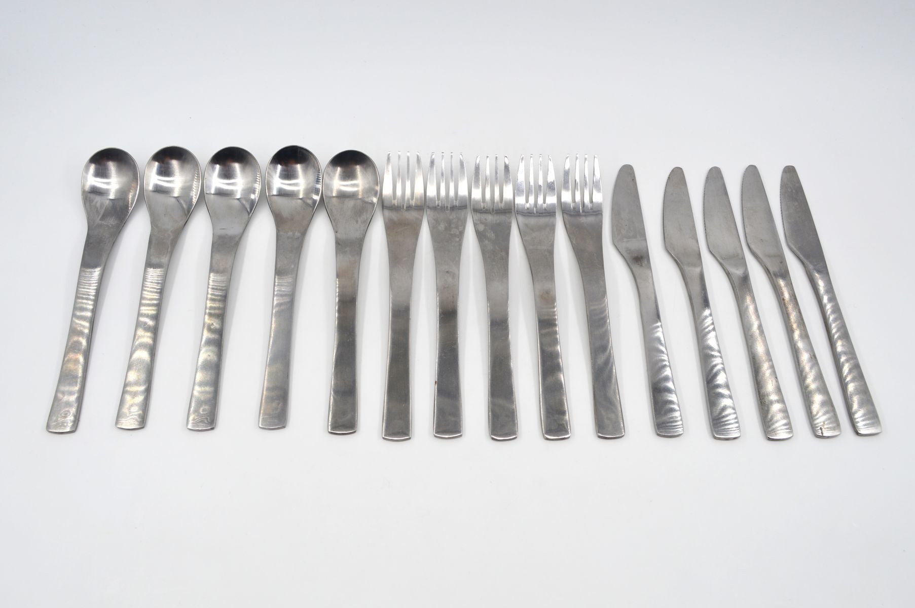 Vintage Aida Cool Besteck Mads Odgaard Design, Dänemark - dänisches Mid Century Besteck 1980er Jahre, Edelstahl gebürstet, Vintage Küchenbesteck